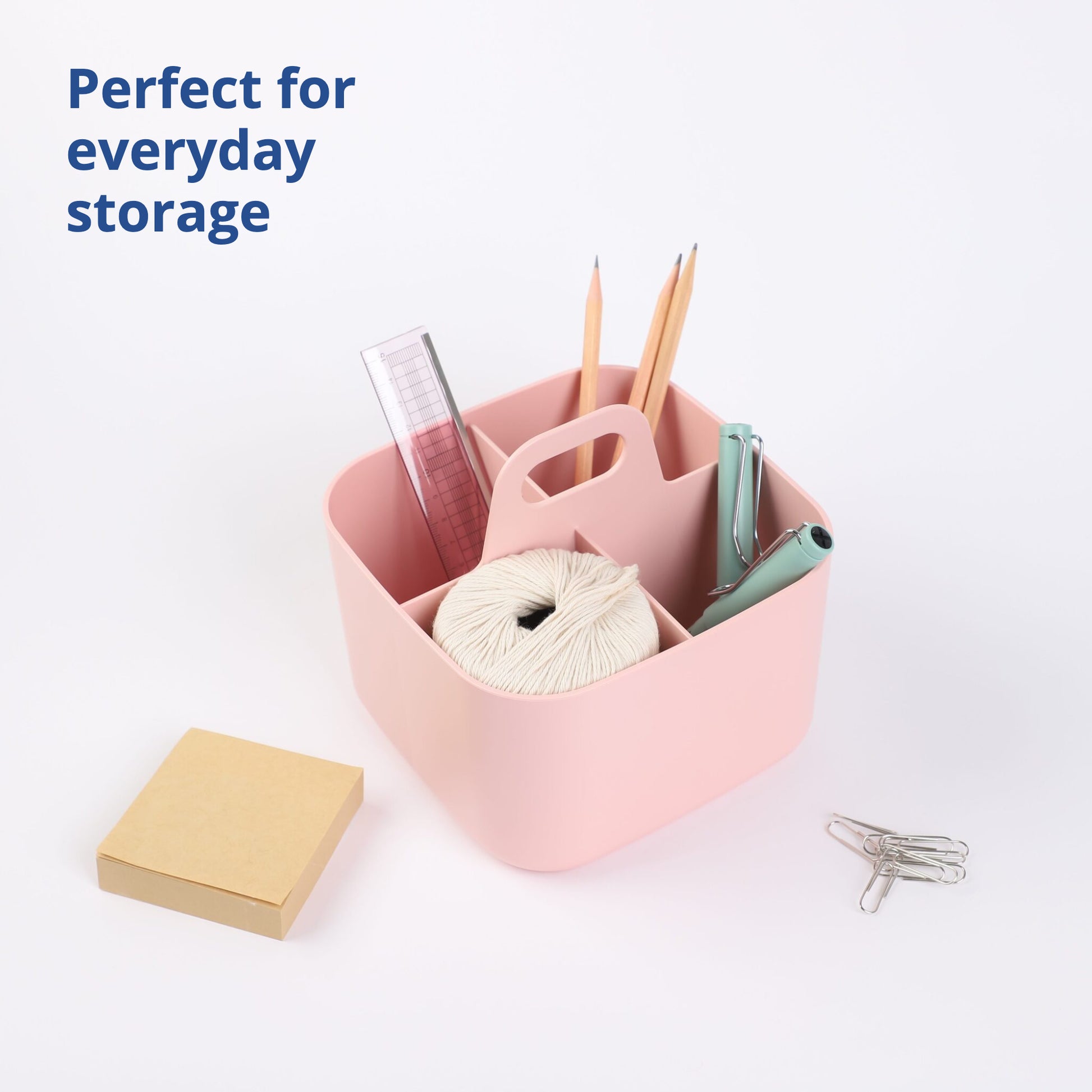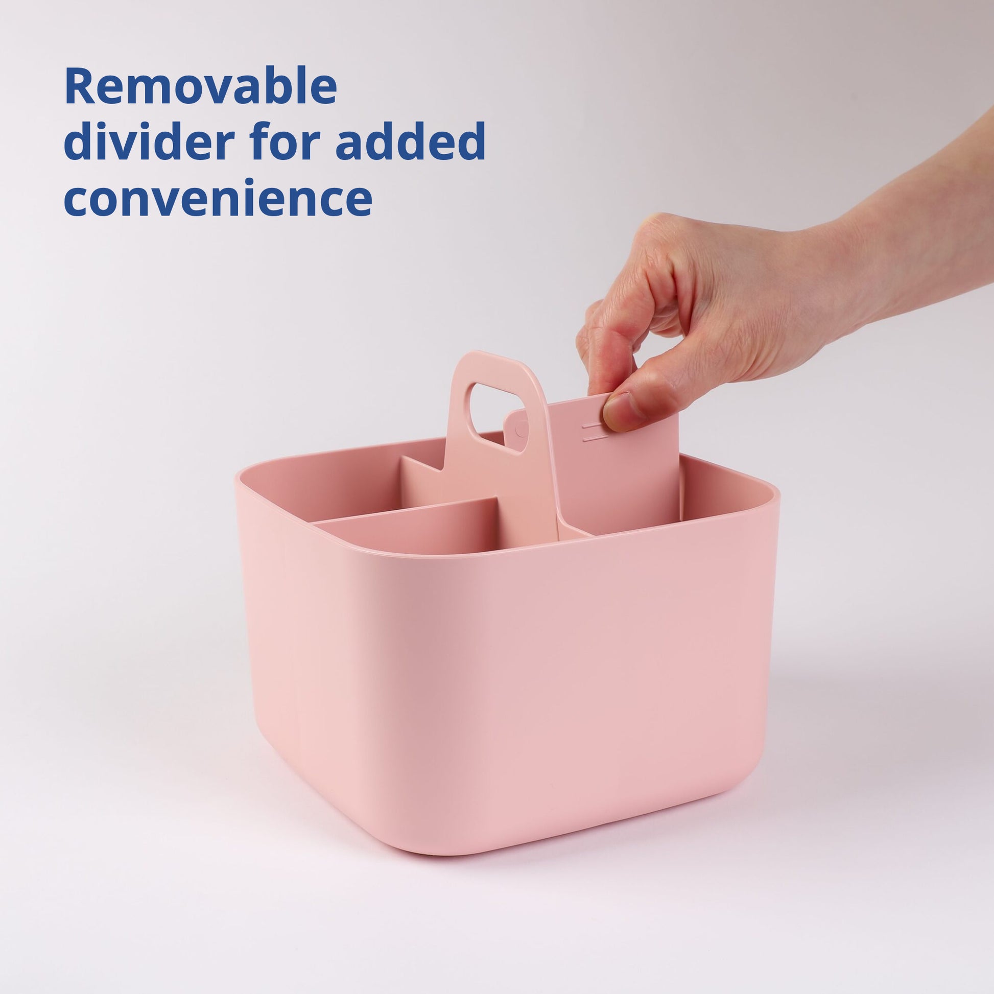 Available in two sizes, our Storage Caddy is stackable, portable, and versatile. It has a modern design and details that make it a great option as a small cleaning caddy, makeup caddy, art supply organizer, and much more.